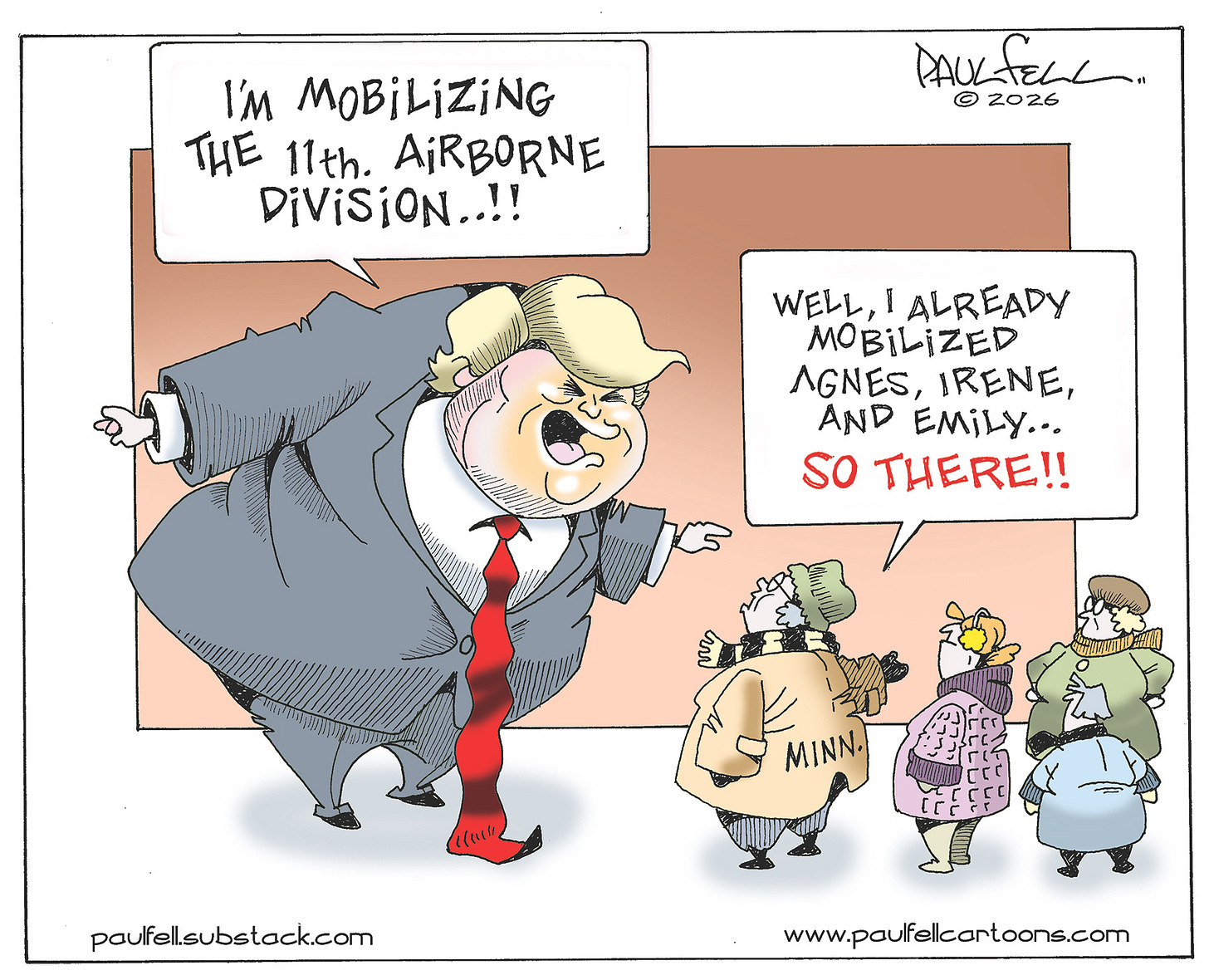 Donald Trump may have the 11th Airborne Division as his backup. But Minnesotans have their “aunties” Agnes, Irene, Emily, and every other good person in the U.S. too.